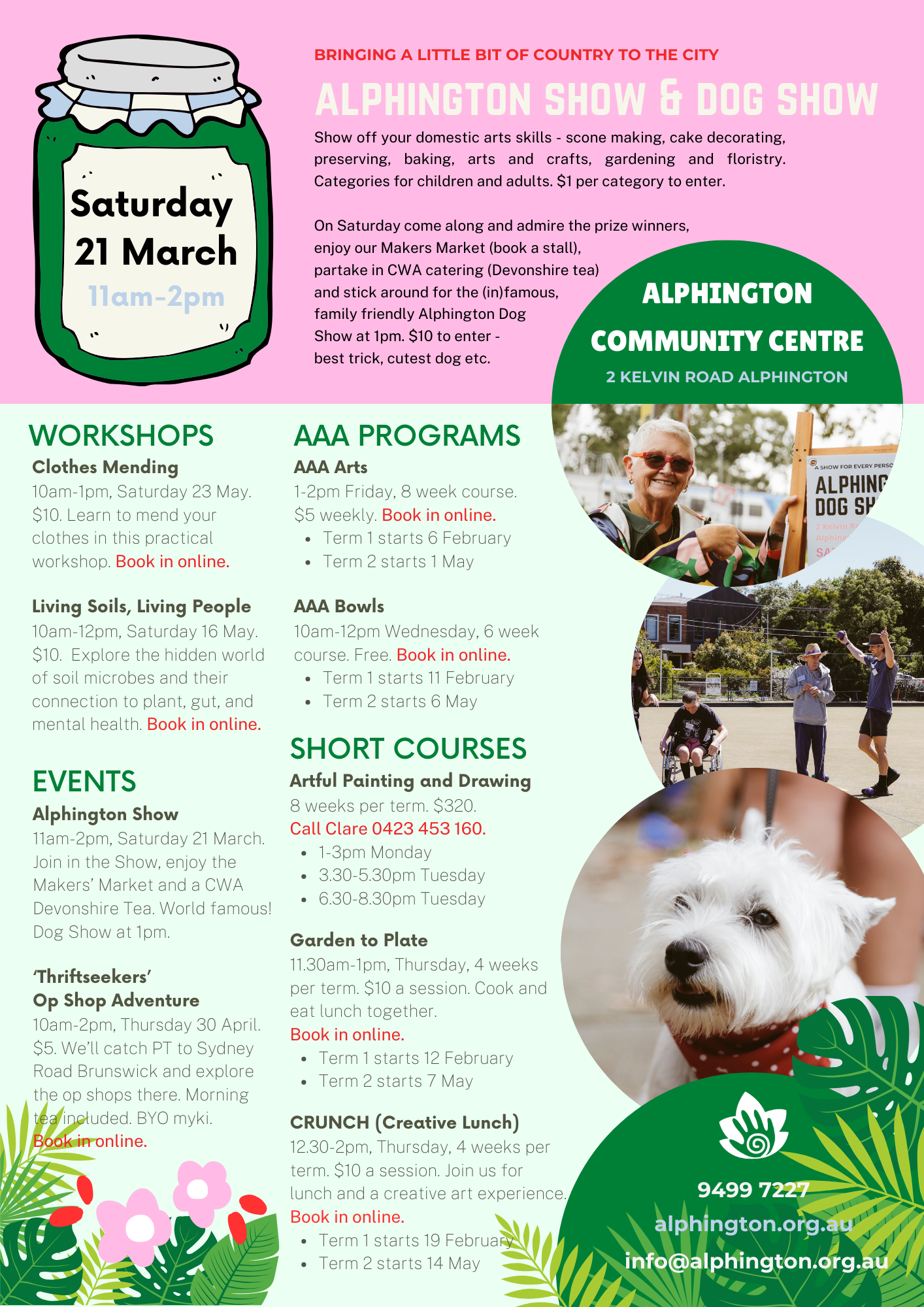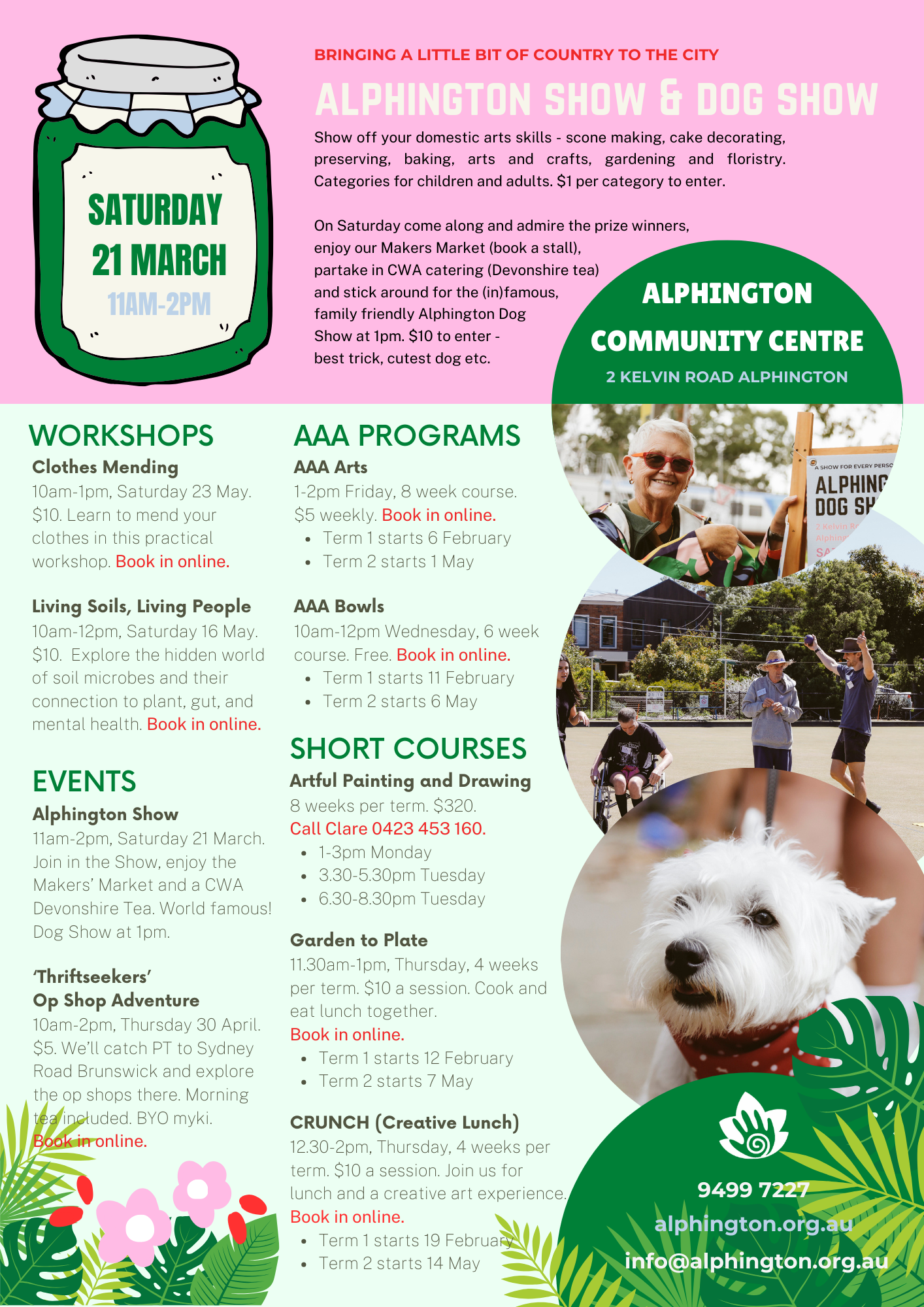The Alphington Show is our big event run every second year in partnership with the Alphington CWA. Find our more here.