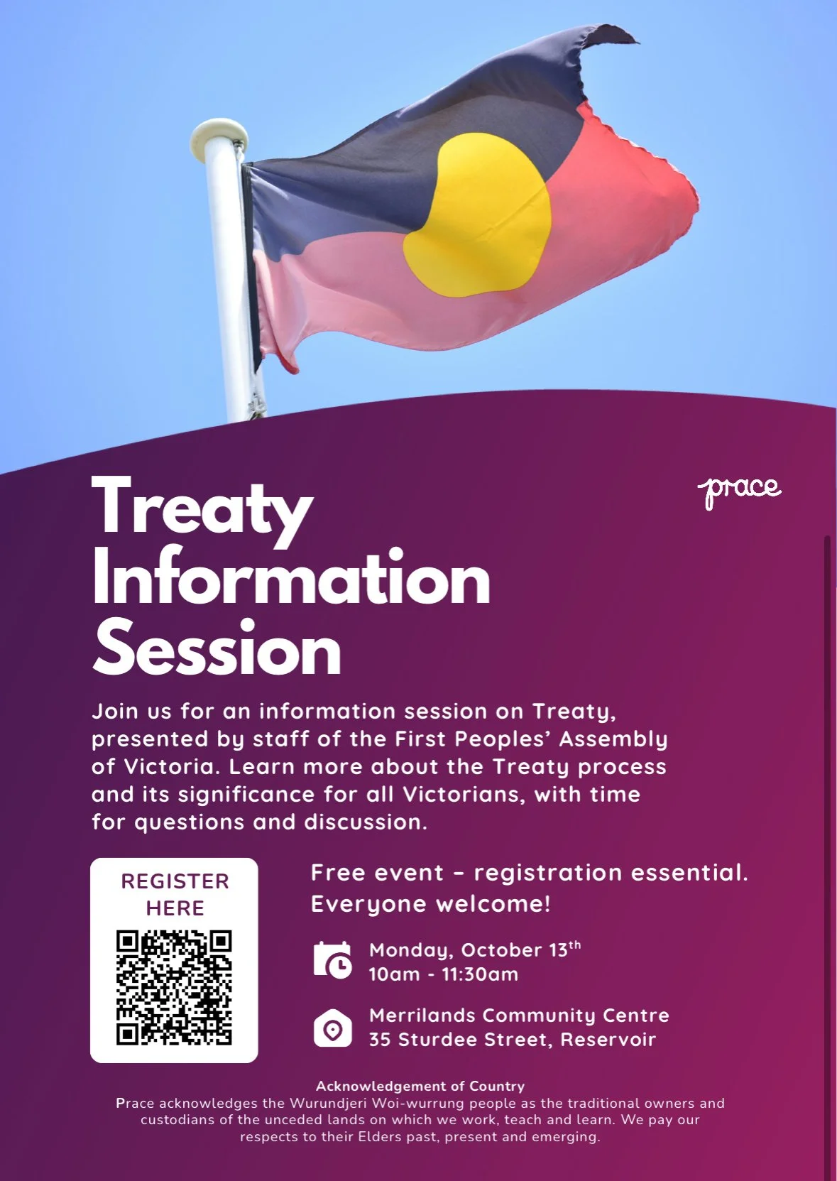 Prace (which incorporates Merrilands Community Centre - another neighbourhood house in Darebin) is hosting an information session on Treaty for Victoria, presented by staff of the First Peoples’ Assembly of Victoria.