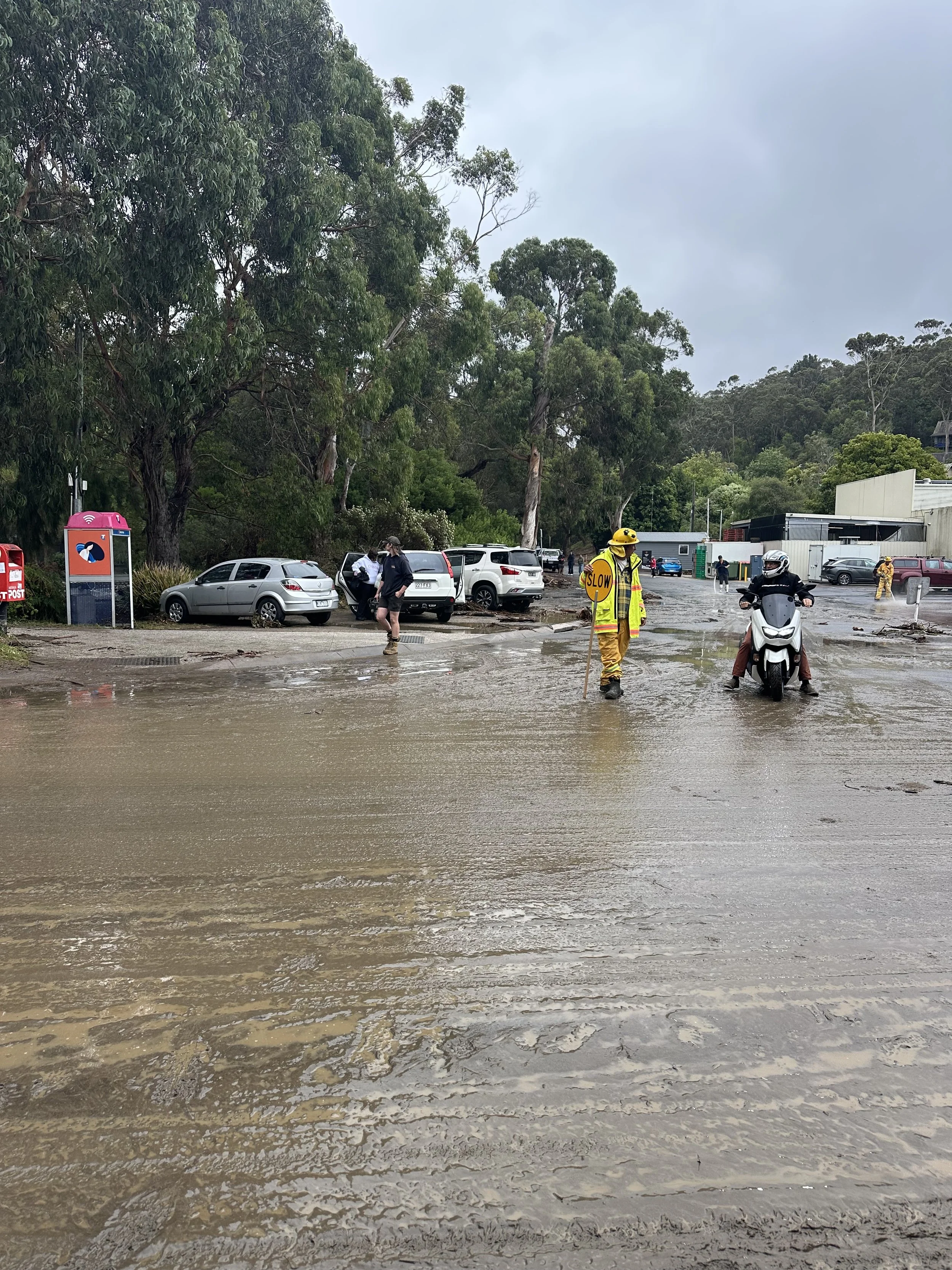 Pretty amazing how quickly the bridge got de-mudded and the shops affected were cleared of water and they started the process of drying out with big fans/heaters.