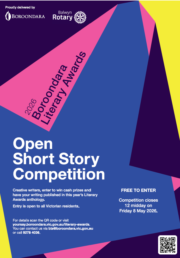 The Awards are made possible by the joint efforts of the Rotary Club of Balwyn and the City of Boroondara. For further details, please visit Literary Awards | Your Say Boroondara, contact Boroondara Library Service on (03) 9278 4666, or email bla@boroondara.vic.gov.au