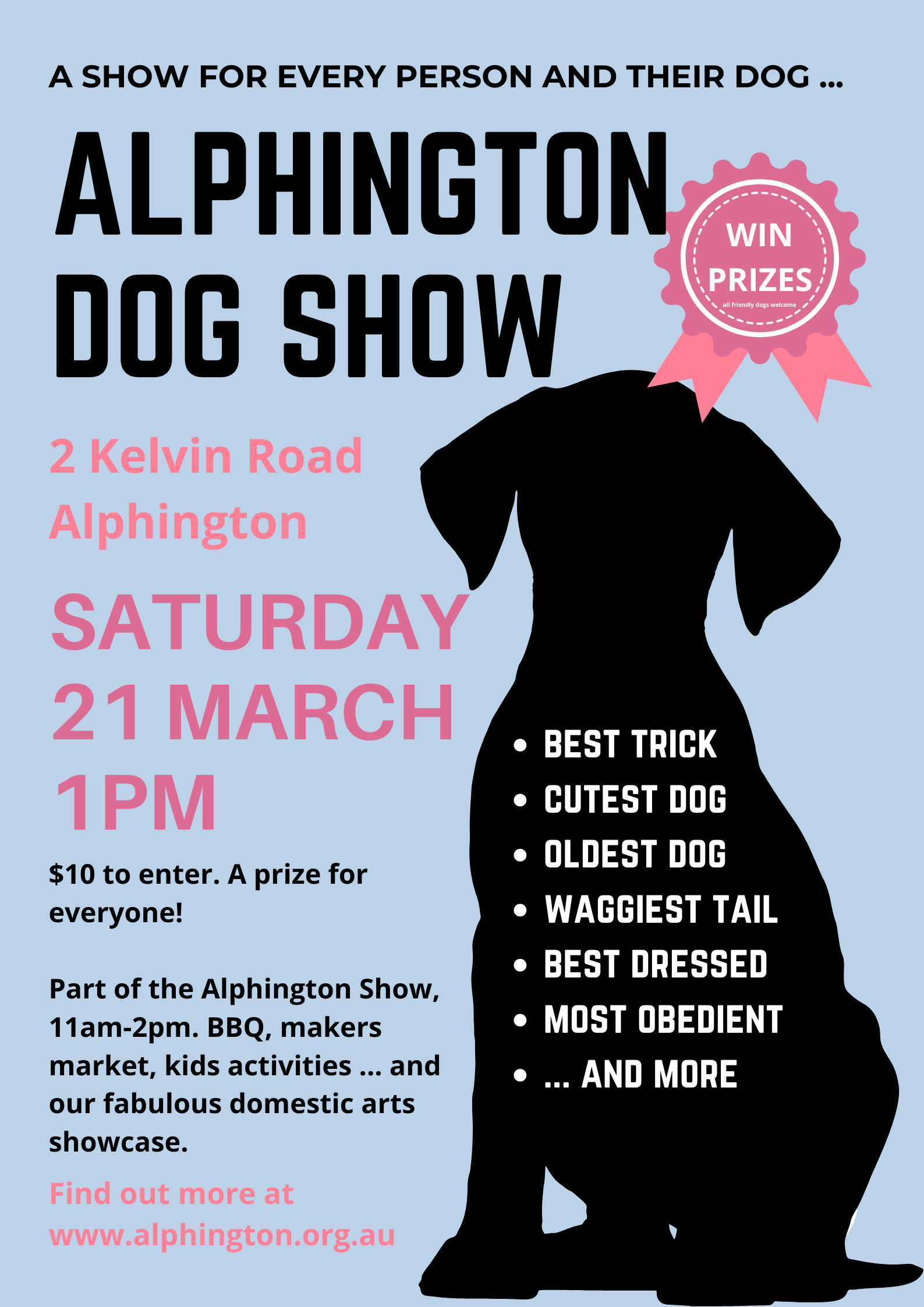 The accompanying Alphington Dog Show is a neighbourhood favourite. Best trick, cutest dog, best dressed … there’s a category that is suitable for the naughtiest and oldest of dogs! And there are prizes again (thanks E&A Salce).